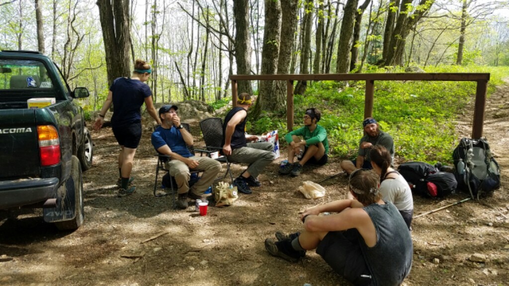 The first was at a random gap where the guy needed a 4 wheel drive vehicle to get up there. The guy who put it on goes by Buttah, and he thru- hiked in 2005. Along with the food and drink, he resurrected a game I haven’t played since middle school… 4-square. We played a few rounds, and I felt like I was back on the playground. We used to play that game every day, I’m amazed it didn’t come up in college. Buttah gave the ball to one of the hikers we’ve been with the past few nights and told us that back in ’05 they played 4-square the whole way to Maine. I have a feeling we’ll be playing again soon.
