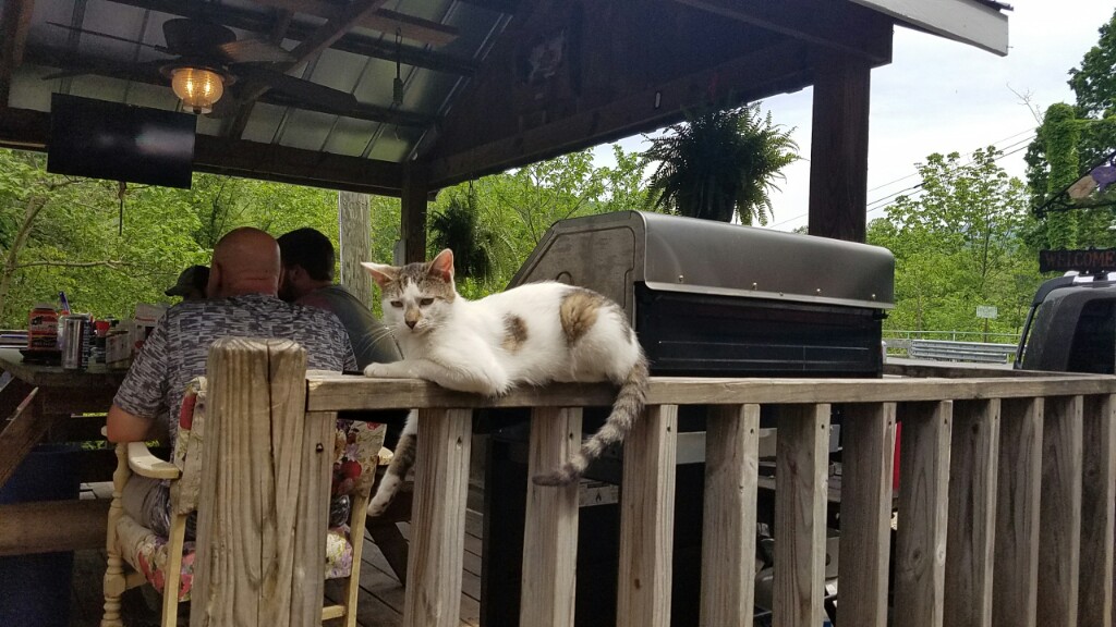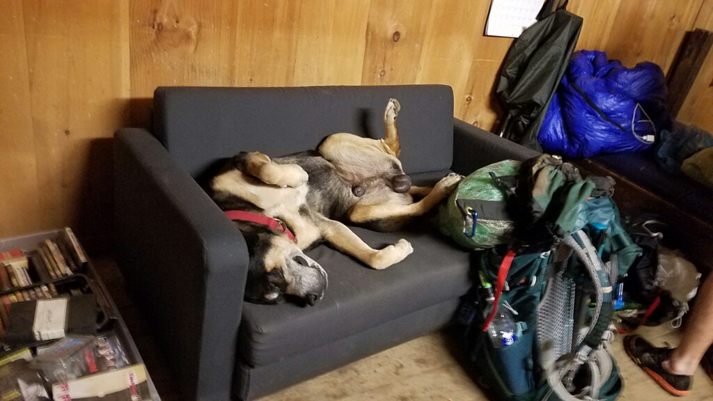 It’s another unique little place that’s really only in existence to support thru- hikers. For $20 you get a mattress, a shower, a shuttle into town, and a place to relax for a bit. There’s a few animals, including a dog named Jerry Garcia, who’s actually asleep and snoring on the couch in the bunk room right now, and a few cats, one of which just dominated a moth in the bunk room… better than a bug zapper!
