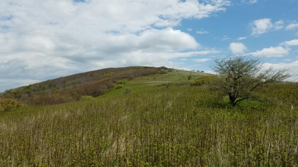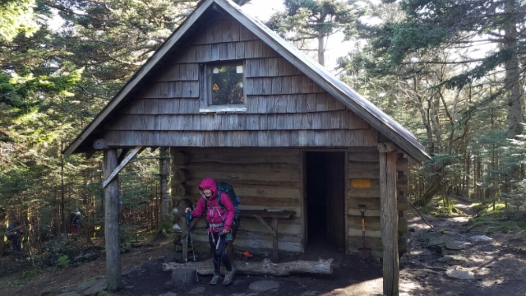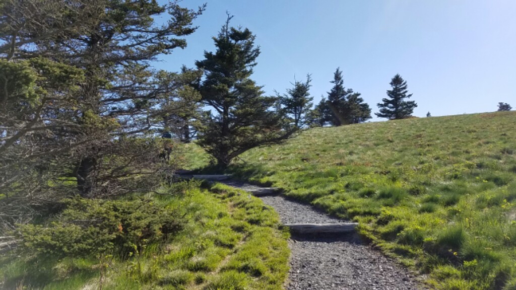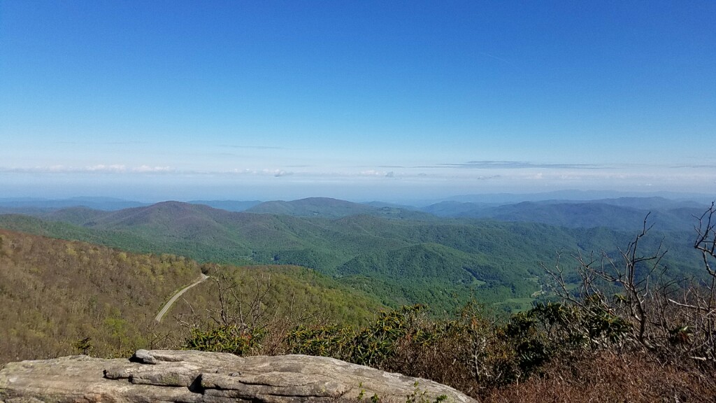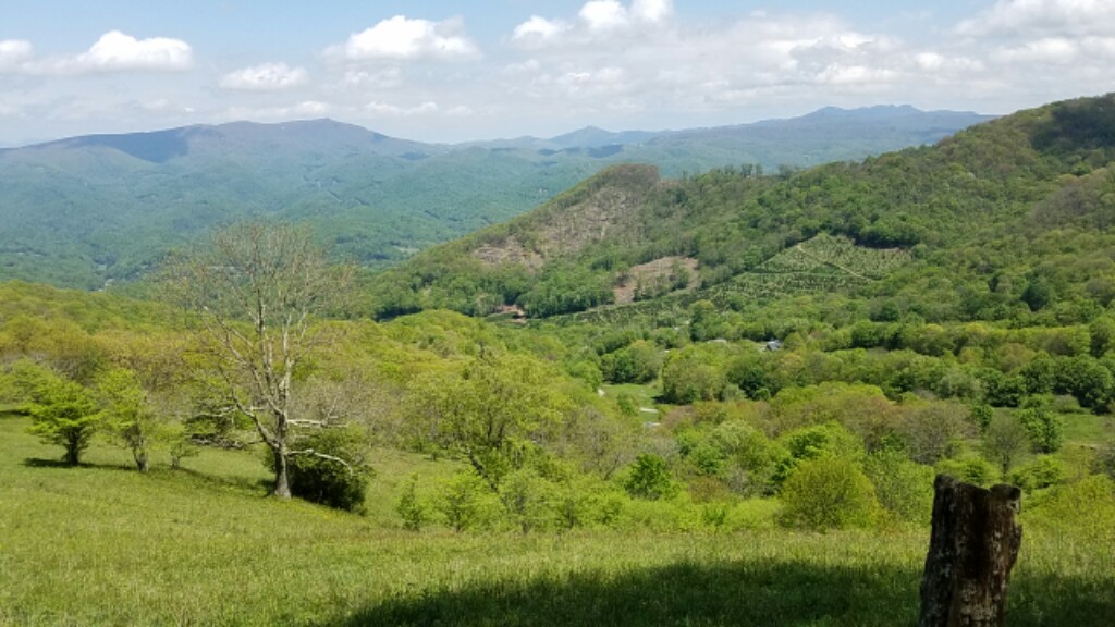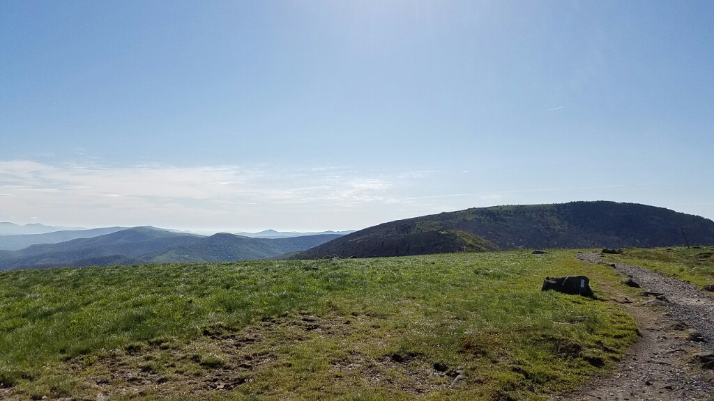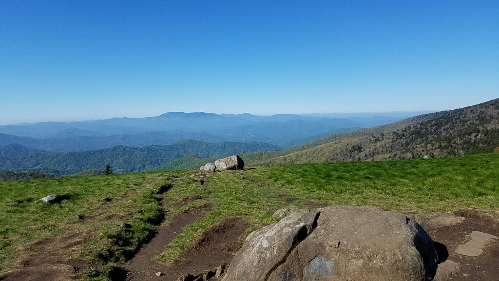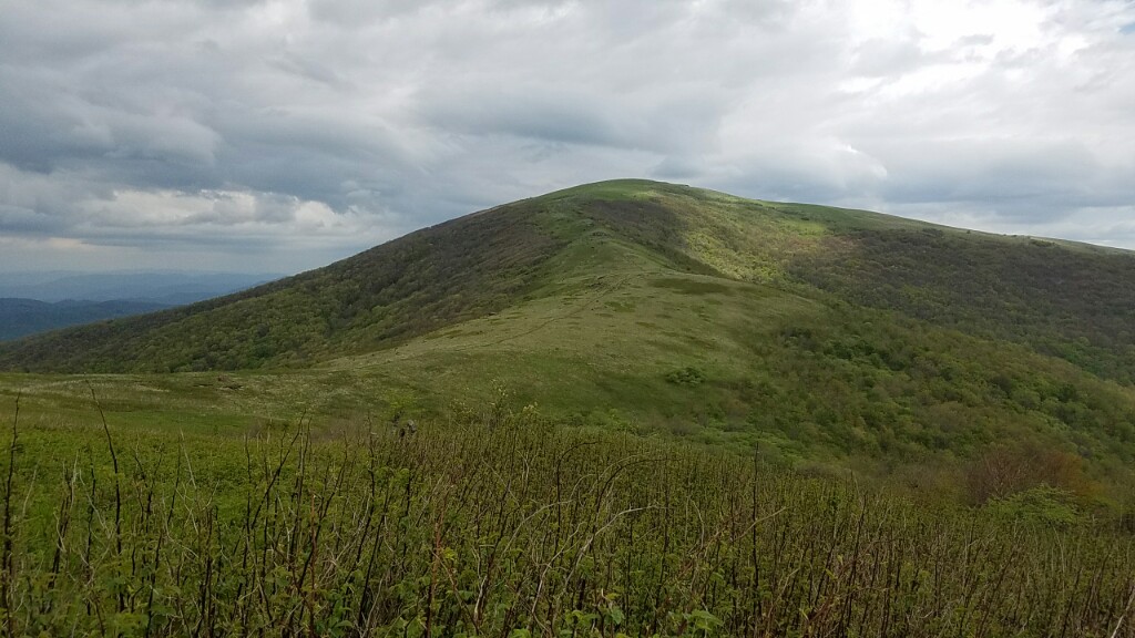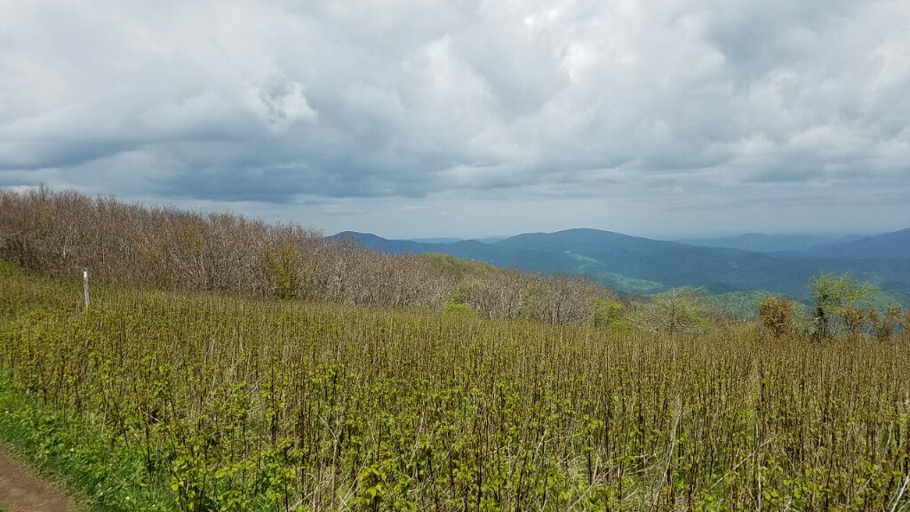 The morning was cold and windy too, but very nice. Once we lost some elevation, and the wind died down a bit, it was very pleasant. After descending from Roan High Knob, we spent most of the day hiking up and down wide open grassy balds with excellent views. In some of today’s photos you’ll see a barn in a valley. This is actually a converted barn that’s now a shelter for hikers. We would have visited, but it’s about .3 miles off the trail, and that’s distance we didn’t want to add.