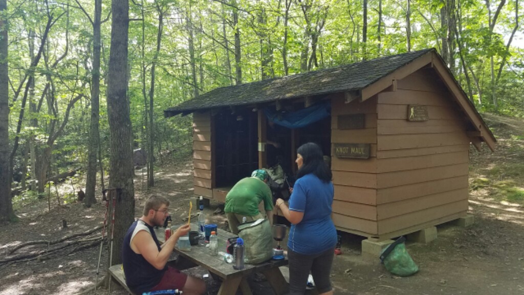 We’ve got a good group around the shelter tonight, a few new faces for us like Refill who is from Hamburg, Germany. We’re also sharing the shelter with Weather or Knot and his dog Riley, who we first met way back at Neels Gap.