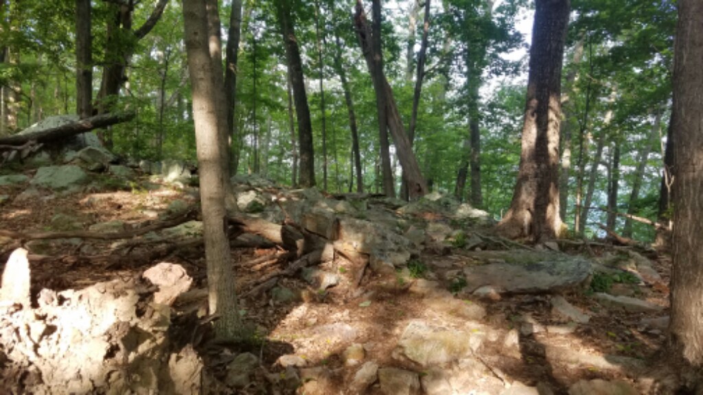 As we started the hike in to McAfee Knob, it started raining hard again. We took shelter at the first shelter we encountered, and began toying with the idea of just stopping there for the night. We had cell service so we were looking at the radar… and it didn’t look good. We really didn’t want to add the extra miles on our hike into town tomorrow, so when the rain slowed down a little bit, we donned our packs once more and moved add quickly as we could up to McAfee Knob.