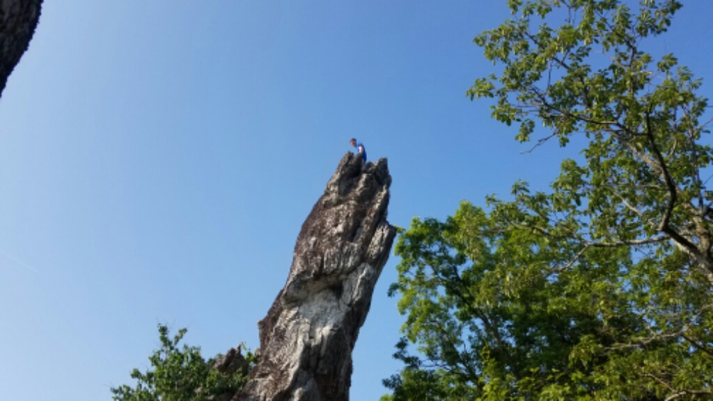 The day began with a pretty strenuous hike up to Dragon’s Tooth, which is a giant stone monolith on top of a mountain. It was a pretty clear morning, and still fairly early so there was only one other hiker there with us, and we got some nice views. The climb down was even tougher, lots of scrambles down rock faces, even a few points where they drove steel foot holds into the rock so you could get up and down.