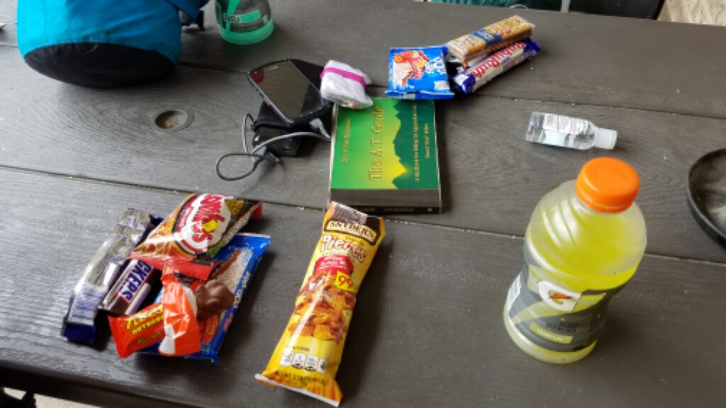 After picture time we made it down to Campbell Shelter without any more rain. There is supposed to be some more heavy rain tonight, so we’re sleeping in the shelter, which will hopefully also help us get a quicker start in the morning. I am unfortunately going to have to put on wet hiking shorts, and my boots will probably still be pretty wet, but it doesn’t matter. Tomorrow is a town day, and we’ve already got reservations for a hotel, and the hotel has laundry facilities.