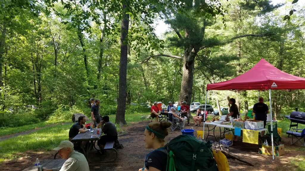 It’s never easy to leave trail magic, especially when you’re catching up with some friends. Eventually… around 1pm to be exact… we said our goodbyes, and we were off. It was a really nice day… not too hot, nice clear sky, and a light breeze. The trail was very nice too, nothing too strenuous, which was good because we were doubly stuffed after breakfast and the trail magic. About 9 miles later, we reached Elk Wallow Gap where we found the PATC (Potomac Appalachian Trail Club) putting on more trail magic for hikers. This is a group that puts in a lot of volunteer hours to maintain a very long section of the trail, so I want to thank them for their hard work, and of course a double trail magic day is always a plus.