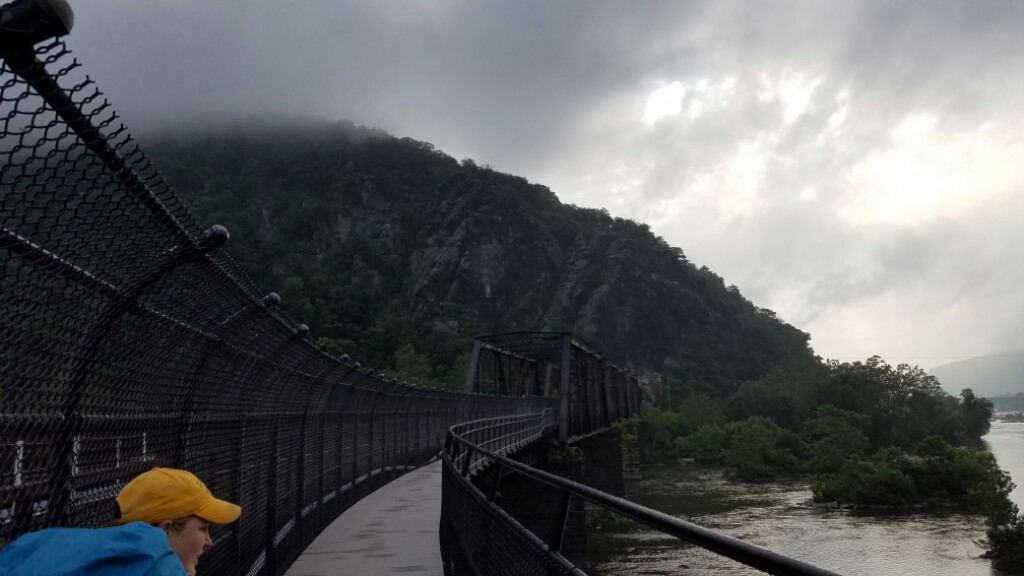 After our double zero in Harper’s Ferry, we were back out on the trail by 7:30 this morning. It definitely rained at some point last night, because everything was wet… we had to be careful on the rocks and steps. We took one last stroll through the historic part of Harper’s Ferry, where the trail goes through, then crossed over the Potomac River, leaving behind West Virginia, and entering Maryland. This is the last of the southern states that we’ll hike through, and we should finish it in less than two days.