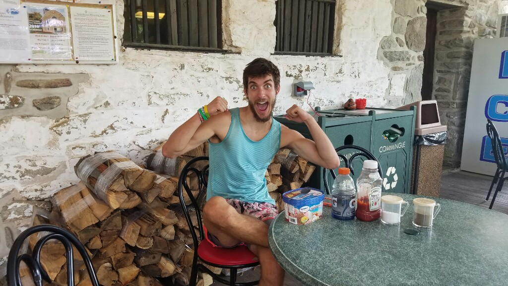 We didn’t fully participate in the challenge, but we did split a 1.75 quart tub of moose tracks, a breakfast sandwich, and a bunch of fries. The ice cream went down surprisingly easily, even with all that other food, it almost felt like we could’ve done the challenge. We felt like it would’ve been a poor choice, mainly because we still had quite a few miles we wanted to get in fire for the day. After ice cream and food we relaxed for a bit, watched a few other hikers complete the challenge, and checked out the AT museum at the park, which was pretty interesting.