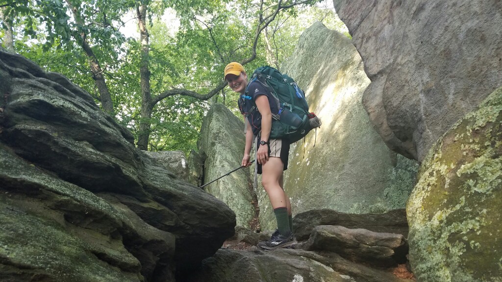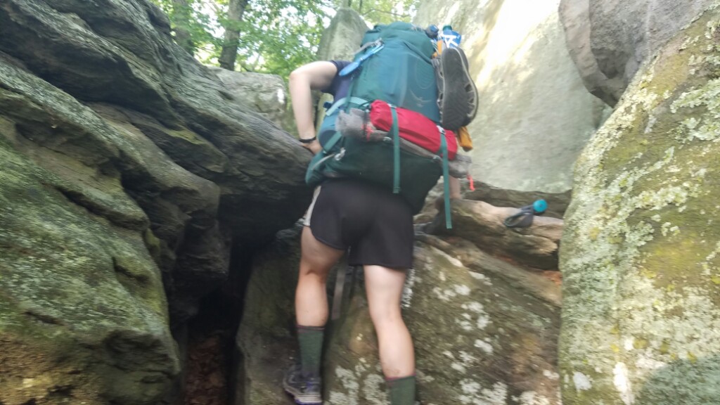 The rest of the hike got pretty interesting after that. The trail took us up over some pretty challenging rocks at the top of a ridge. It was another one of those almost pointless routes, as the trail could’ve just stayed below the ridge on the flatter section of the hill, but no… that wouldn’t have been interesting enough. There was even one spot where you could’ve just walked around a rock, but the trail markers send you through a little rock formation, only to emerge pretty much right where you left off.