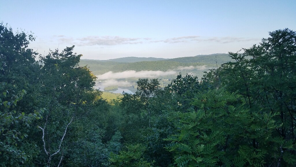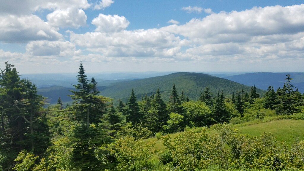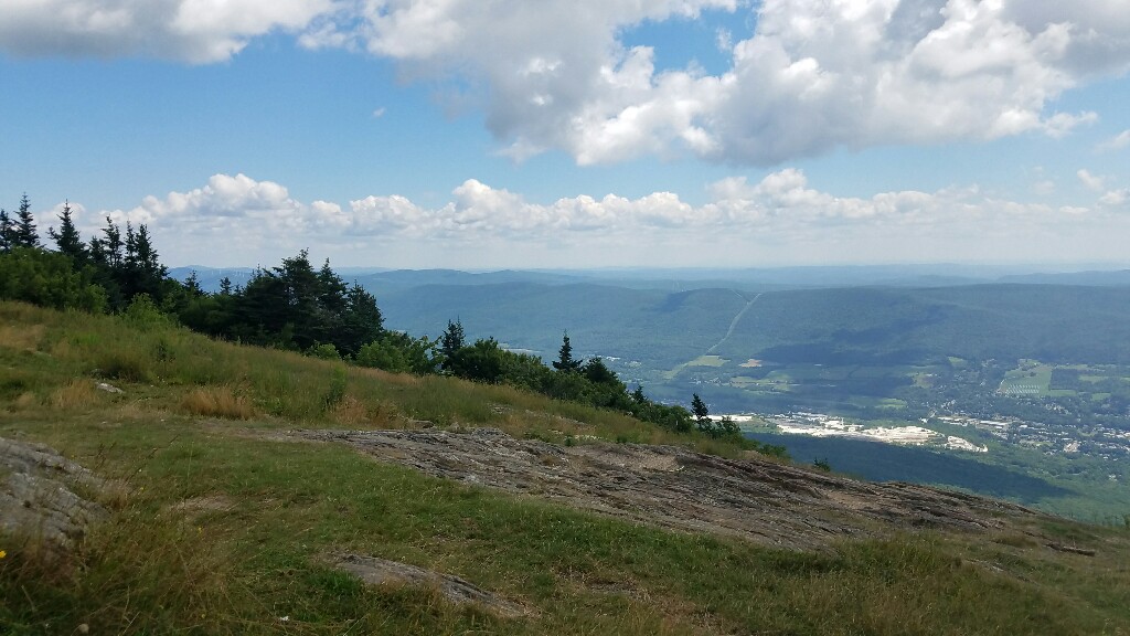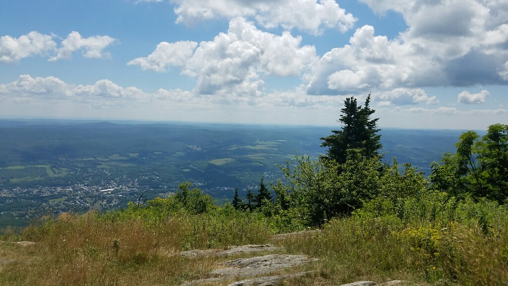 Our next task was to climb Mt. Greylock, the highest peak in Massachusetts. There were some pretty steep sections, but overall it was a nice hike. We lucked out and got a beautiful day for the climb, and we were rewarded on top with great views down towards Adams, MA. Unfortunately the tower on top was being renovated, so we couldn’t go up, but the views were still nice nonetheless. We enjoyed our early lunch up top, checked out the lodge, refilled our water, then headed down the other side of the mountain.