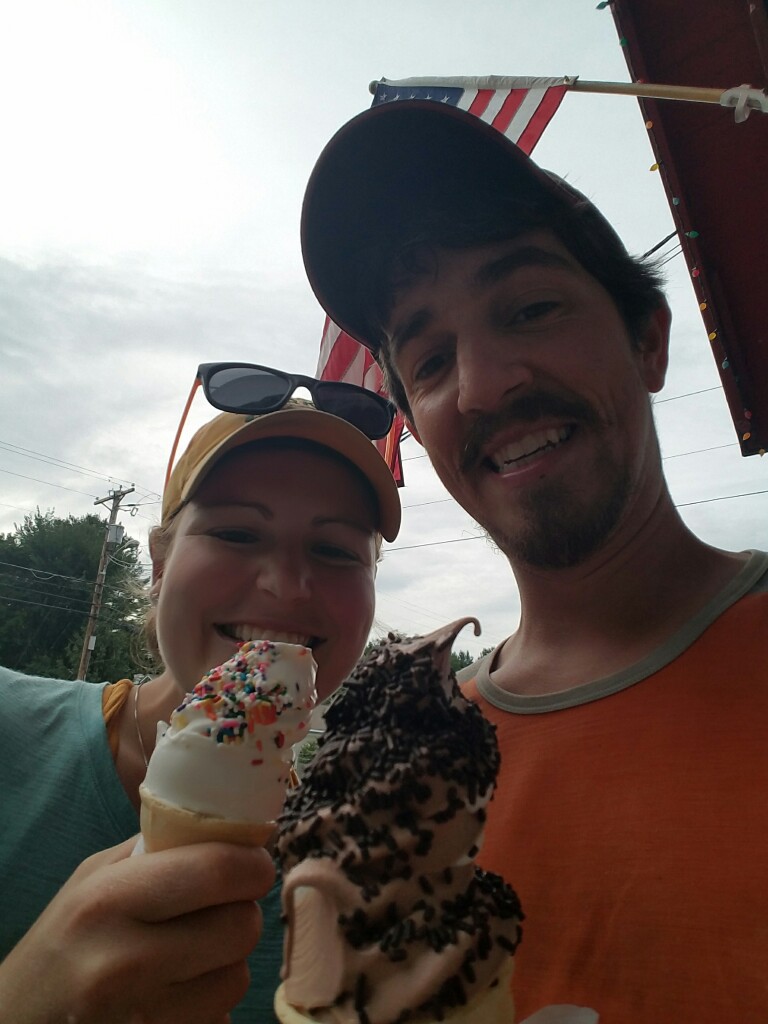 After the hike we headed over to Manchester Center, VT for some food. We had sandwiches at the Northshire Bookstore, which were really good. They do sort of gourmet style sandwiches. We had a nice spot in the window for people watching around the traffic circle. On the drive back down to Bennington we stopped at a creamery for done creemees (soft serve ice cream for those that don’t know what a creemee is).