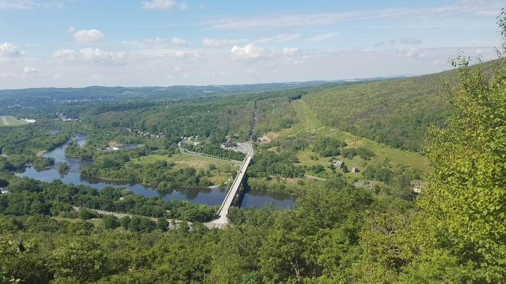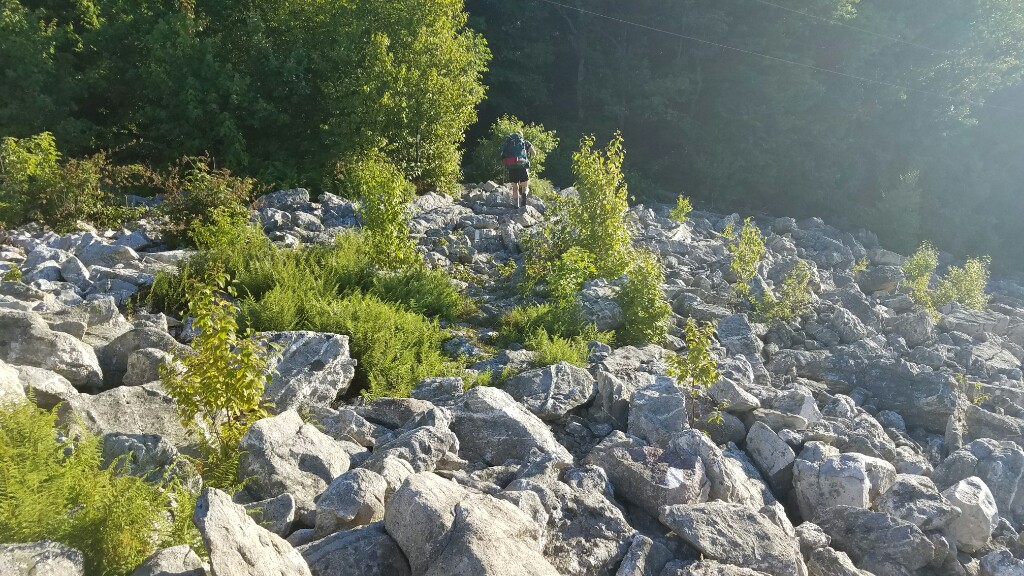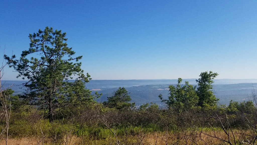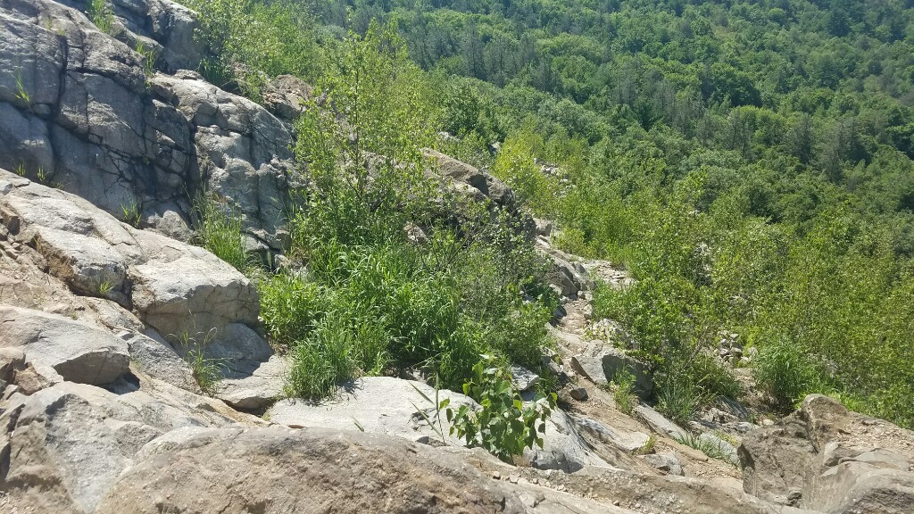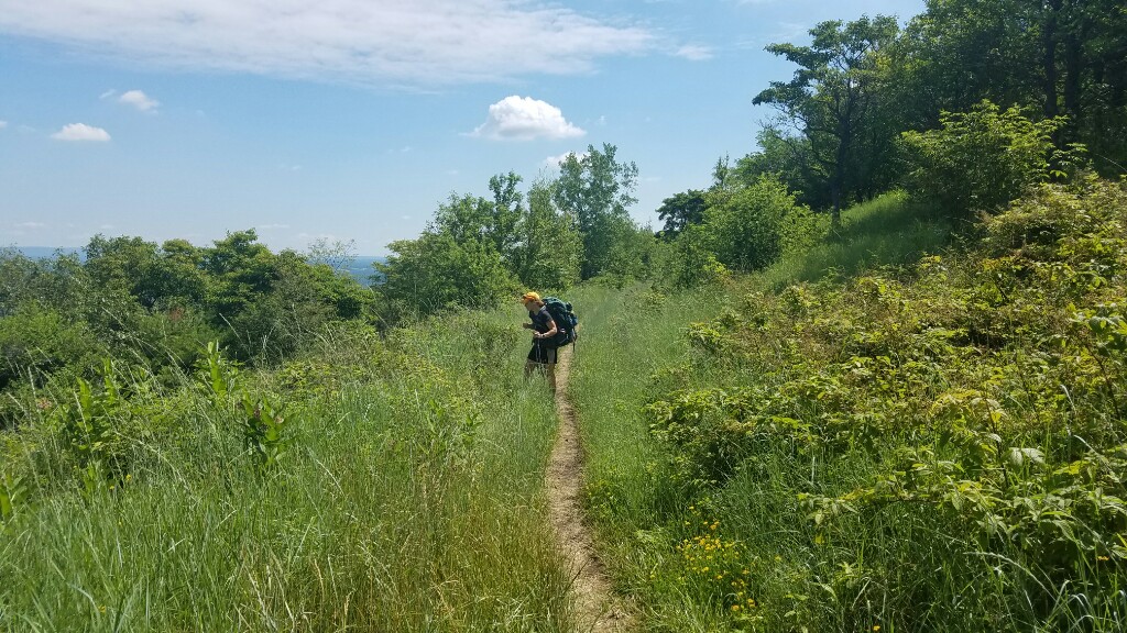 Well, right after our trail magic breakfast, we began a steep, rocky climb out of Lehigh gap, and we found it to be fun because it was different and challenging. There were a few points where we had to toss the hiking poles up and pull ourselves up with both hands. This section would not be for the novice hiker, or the faint of heart. It’s a very steep rock scramble, made even more difficult with the heavy packs due to the extra water we had to carry. But the views of the river and valley below were spectacular, some of the best in days. After the climb up the rocks, we had a nice long ridge walk over a pretty nice trail generously lined with black raspberries.