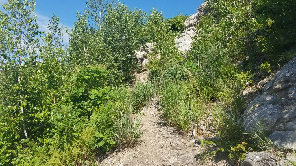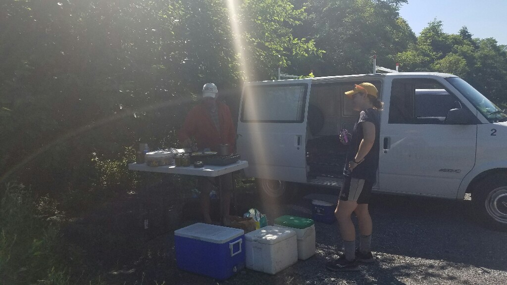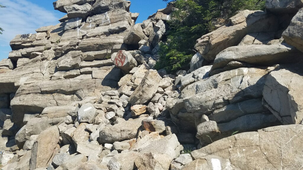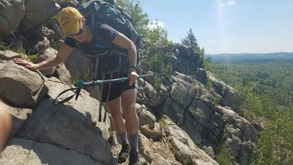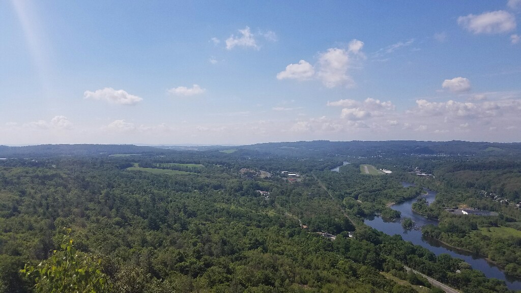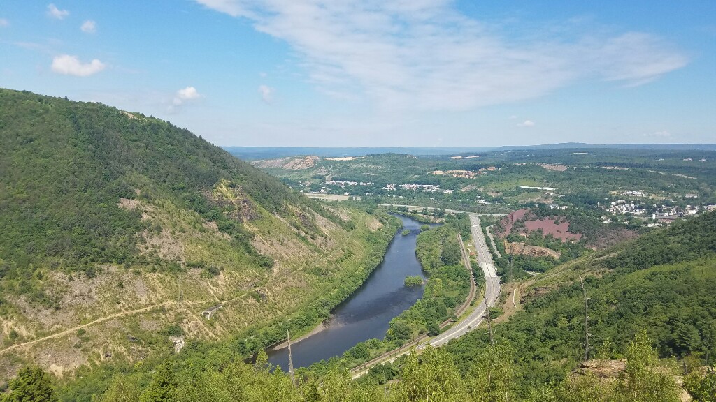 Well, right after our trail magic breakfast, we began a steep, rocky climb out of Lehigh gap, and we found it to be fun because it was different and challenging. There were a few points where we had to toss the hiking poles up and pull ourselves up with both hands. This section would not be for the novice hiker, or the faint of heart. It’s a very steep rock scramble, made even more difficult with the heavy packs due to the extra water we had to carry. But the views of the river and valley below were spectacular, some of the best in days. After the climb up the rocks, we had a nice long ridge walk over a pretty nice trail generously lined with black raspberries.