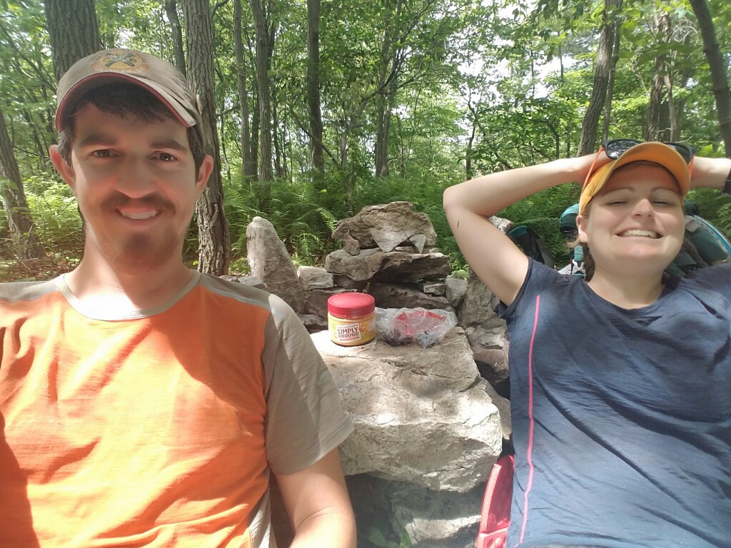 The last 10 miles of the day were annoying. Just more rocks to deal with, stubbing toes and rolling ankles (not in a destructive way). We did encounter a little wildlife. A humongous eastern rat snake slowly slithered across the trail, and we spotted a deer in the woods. We were so relieved when we reached the trail to the Leroy A. Smith shelter. We had done just over 22 miles. Luckily the rain held out for us to set up the tent, cook and eat dinner, and clean up. It’s looking like there may be some more rain overnight, but that’s okay. We’ve got a short 4.5 miles to Wind Gap, where we’re getting picked up and taking two days off. We get to be clean again!