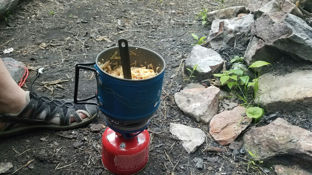 Today was no exception. The began beautiful, warm, and sunny. And of course as we started out, the trail was rocks. Lots of rocks. No surprise there. We had to fill up on water at the George Outerbridge shelter as the next 16 miles or so were dry. When we arrived down in Lehigh Gap, we were immediately surprised with some trail magic in the form of pop tarts and gatorade left by the trail sign. After we crossed the river and the road, we came across another trail magic cooler with soda and chips. Not more than 100 feet up the trail from that, we ran into more trail magic. The only name I got from this guy was The Eggman, so that’s what I’ll call him. He was doing a section hike, and had just gotten back from Stratton, VT. He cooked us up some potatoes and eggs, which were really good, and provided great fuel for the climb out of the gap. The other thing Eggman gave us was a bit of motivation. He reminded us to keep enjoying the journey, not just focus on getting in miles. The past few days we’ve been a little down, and hiking has felt like it’s turned into a job. So that little talk was good, and we were reminded to keep having fun, because if it stops being enjoyable, then what’s the point?