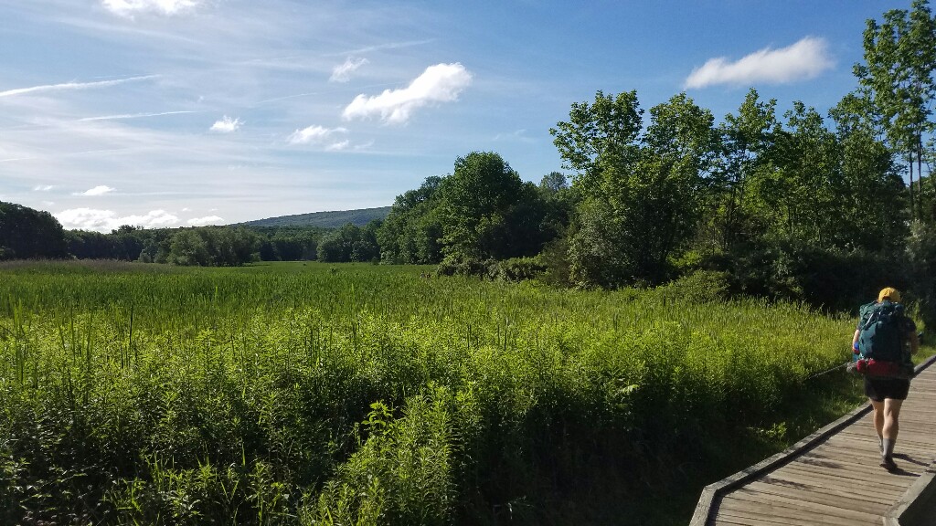 It was another long day, but a good one. The weather was perfect all day, and the trail stayed interesting. We began the day by finishing the climb up Pochuck Mountain. Also within the first 6 miles of the day was a long, .8 mile boardwalk through a big, which was really cool. We stopped by one of the pools that the boardwalk crossed and counted up something like 20 turtles either swimming around or sunning themselves. By about 9:45, we arrived at the road crossing at NJ 94, where we headed just up the road to Heaven Hill Farm store. This turned into our breakfast stop where we got muffins and cider doughnuts. We also grabbed a few chicken wraps for lunch, and a few snacks. It was a nice little stop, and very close to the trail.