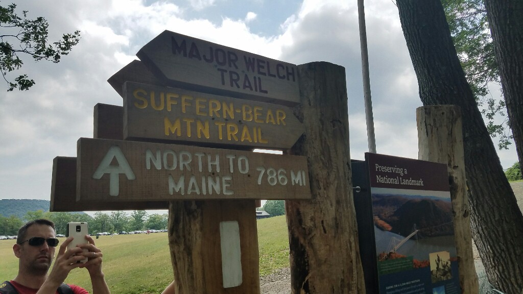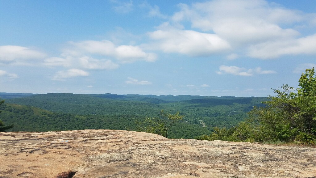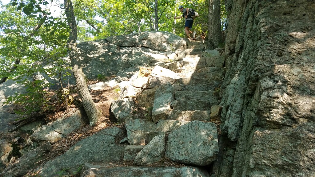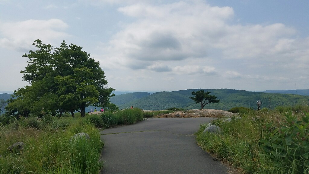Our first big milestone of the day was reaching the top of Bear Mountain, which overlooks the Hudson River. On a clear day you can see the New York City skyline, but today was just a bit too hazy so we couldn’t really see it. There were some nice views from the tower on top of the mountain, and there were some vending machines so we could grab a cold drink. We also hit the 1400 mile mark on Bear Mountain, meaning there’s less than 800 miles to the end of this hike.