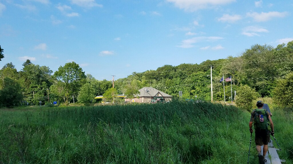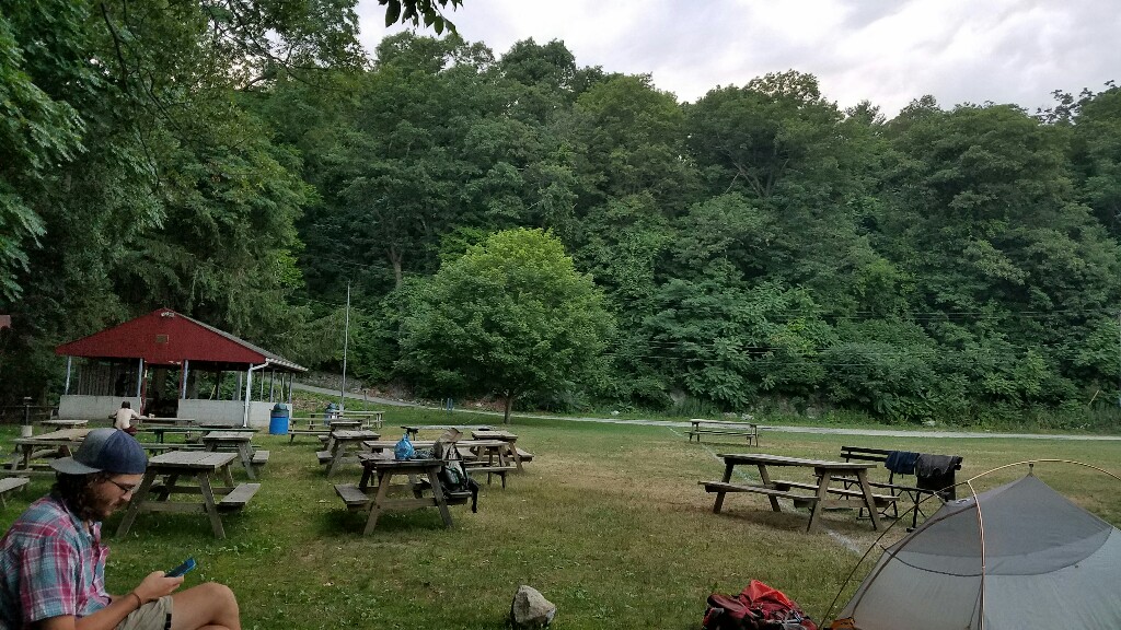 We only did about 5 more miles after crossing the Hudson. At the end of that stretch we hit the Appalachian Trail store, which is really just a gas station/ deli, but we got some huge sandwiches and some beverages for dinner. After that we walked about .6 miles to the Greymoor Spiritual Life Center, where they allow hikers to camp at their ball fields. They’ve been allowing that since the 1970s, and it’s a nice little setup with a pavilion, port-o-lets, a water spigot, and a shower. There’s quite a few hikers here tonight but only really two that we know. I’m hoping that the temperature dips a bit tonight, because I sleep much better when it’s cooler.