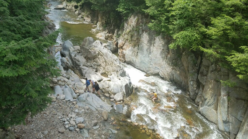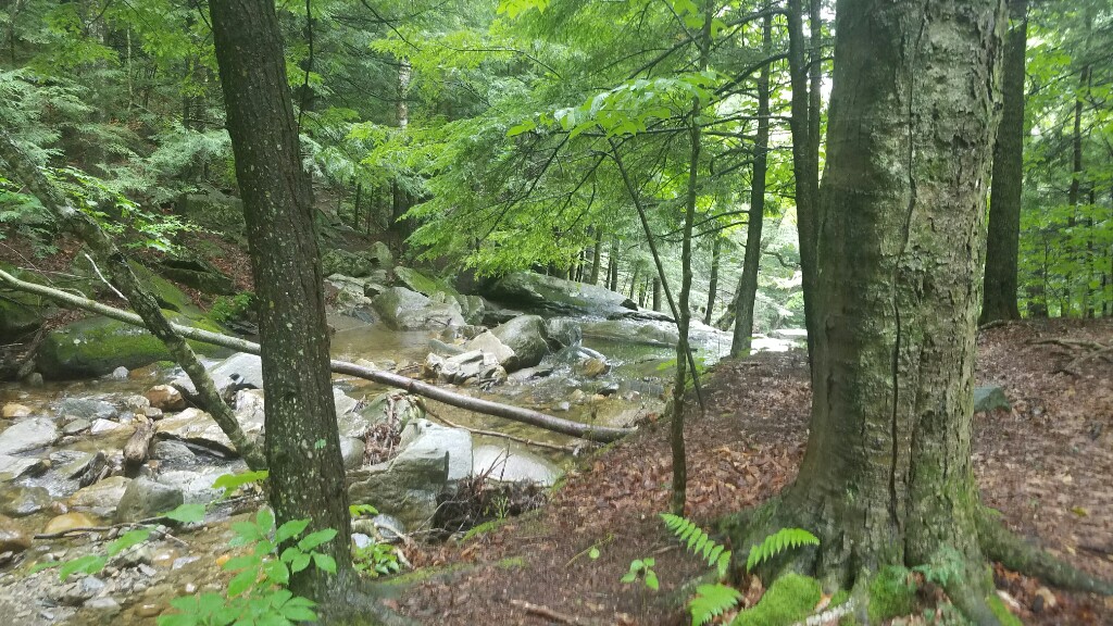 The hike today was filled with steep rocky climbs, slippery descents, rock hops across streams, and dark pine forests. The day was capped by a long, steep climb up Killington mountain, where we’re tented next to the Cooper Lodge Shelter. In total we did just over 19 miles for the day, and they were some tough miles.
