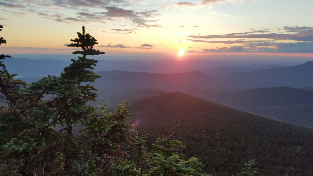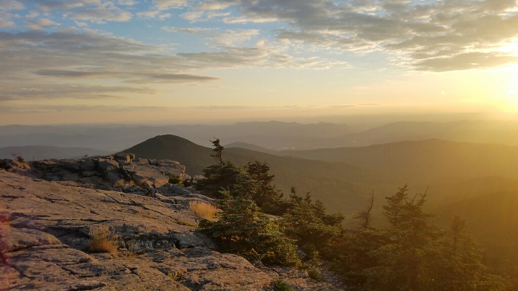 The highlight of today was the end. We climbed up to Killington peak to make our dinner. We were treated to spectacular views north and west. We could even see the Adirondacks out in the distance. The sunset was just incredible… it was a great way to end the day, and made us glad we’d climbed the steep .2 miles up to the peak. To anyone else hiking the AT or the LT, if you’re up on Killington on a nice day, don’t miss the summit. It’s worth the extra climb.