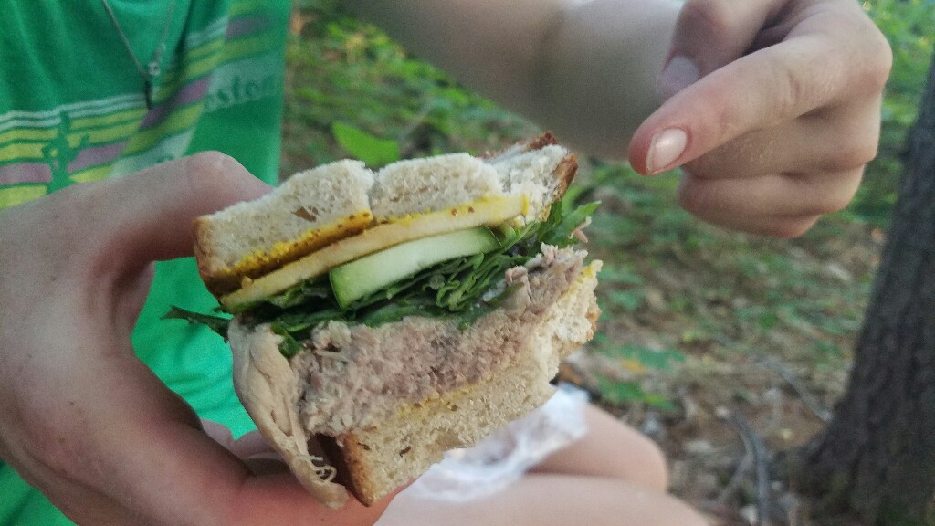 We finally parted ways with Bear Bell’s mom. Much thanks to Bear Bell’s mom once again for helping us out the past few days. We really enjoyed hanging out, and hope she enjoyed meeting a few other hikers. We hiked about little over 3 more miles in, just past Joe Ranger Road, and found a little flat spot out in the woods. We set up camp, ate our packed in sandwiches, and climbed into bed.