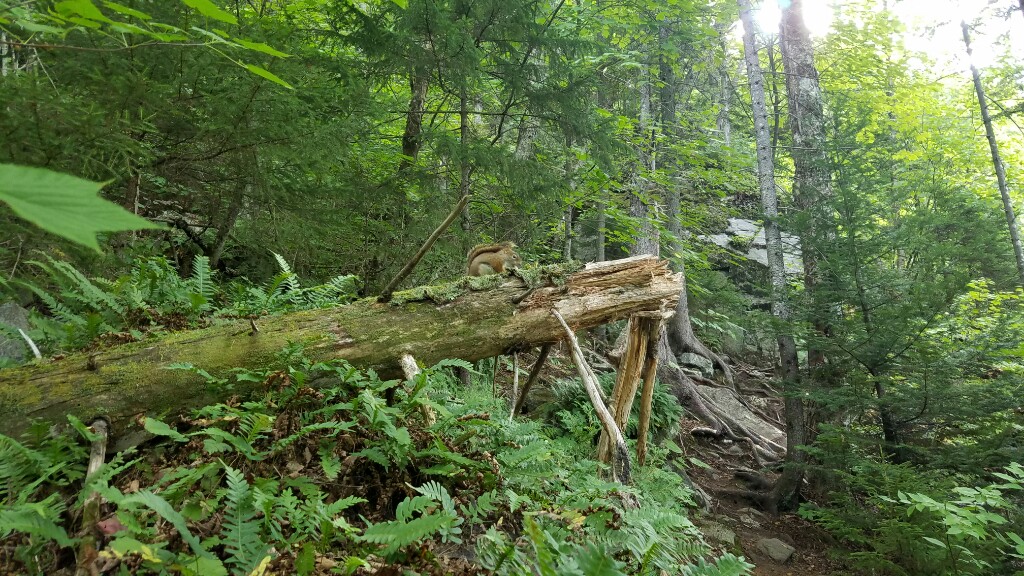The initial climb up Wyman Mountain wasn’t really too rough. There were a few annoying parts where the trail kind of snaked up and down across the slope of the mountain, but we covered 4 miles in about 1.5 hours. The hard part of the hike was the descent into and subsequent climb out of Sawyer Notch up to Moody Mountain. All parts of this section were steep, a few parts required rebar handholds and ladders. We were drenched in sweat by the time we reached South Arm Road. We made good time though, even with legs of rubber we got to the trailhead by 11am.