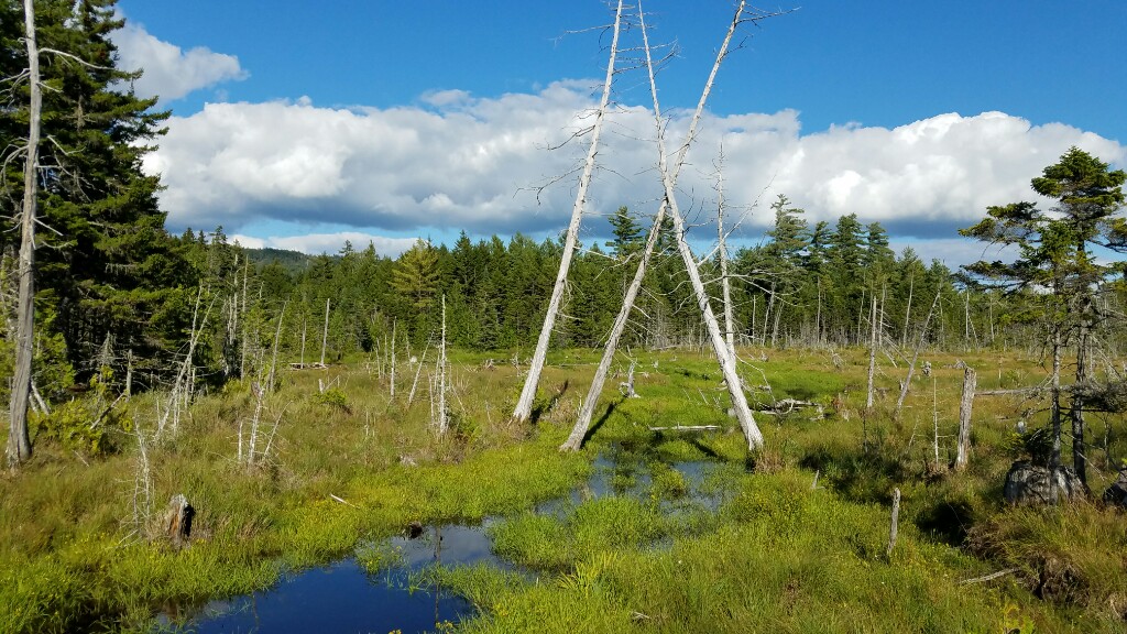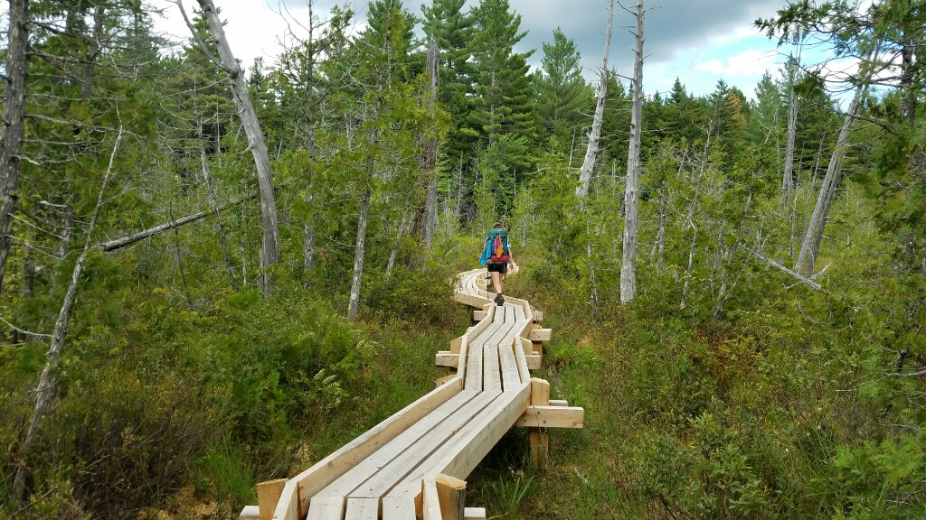 We killed it today… just under 23 miles by 6pm. The trail started off with some ups and downs around Bigelow Junior, but then we descended down into a valley, and most of the day was spent walking along ponds and lakes. It was a cooler day, and pretty windy, so windy that the ponds had waves with white caps, but it was mostly sunny all day. It ended up getting warm enough for us to wade into one of the ponds at lunchtime to cool off a bit. We’re camped out next to Pierce Pond Lean-to, right next to the water tonight. It’s one of the more pretty spots we’ve had on the whole trail.