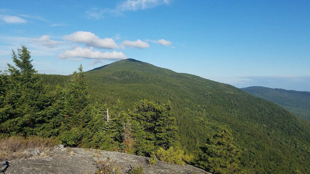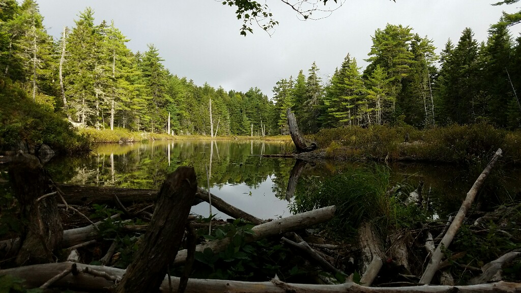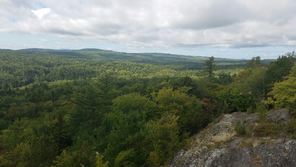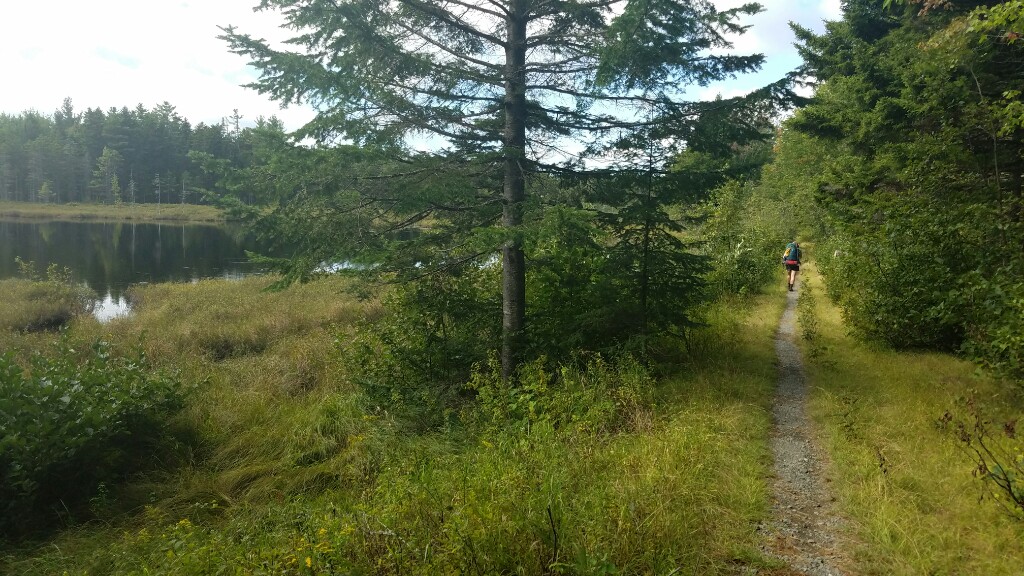 The end of the day was capped with the biggest climb of the day up Barren Mountain. There were some really good views on the way up at some ledges, overlooking a pond and the vast wilderness beyond. At the top was a dismantled fire tower, and many short pines, so no open views, so we didn’t hang around long. We reached the Cloud Pond Lean-to right around 6:30pm, completing 19.1 miles for the day. Since we’re heading into fall, daylight has been fading quickly. By 7:45 we were eating our dinner by headlamp. We’ll be trying to stop a bit earlier the next few nights. Only a few more days to go….