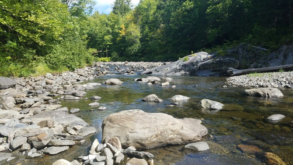 It was a muggy day, and we both were dripping in sweat soon after starting. The trail was nothing too difficult, but not easy either. A lot of short ups and downs, and lots of roots. We had a few stream crossings, but they weren’t very challenging. Since it’s been a dry summer many of the streams and rivers that would normally need to be forded are easily crossed by rock hopping. We took our two breaks by the water today, and we even went for a little dip in the second one, at Vaughn Stream, which felt really nice.