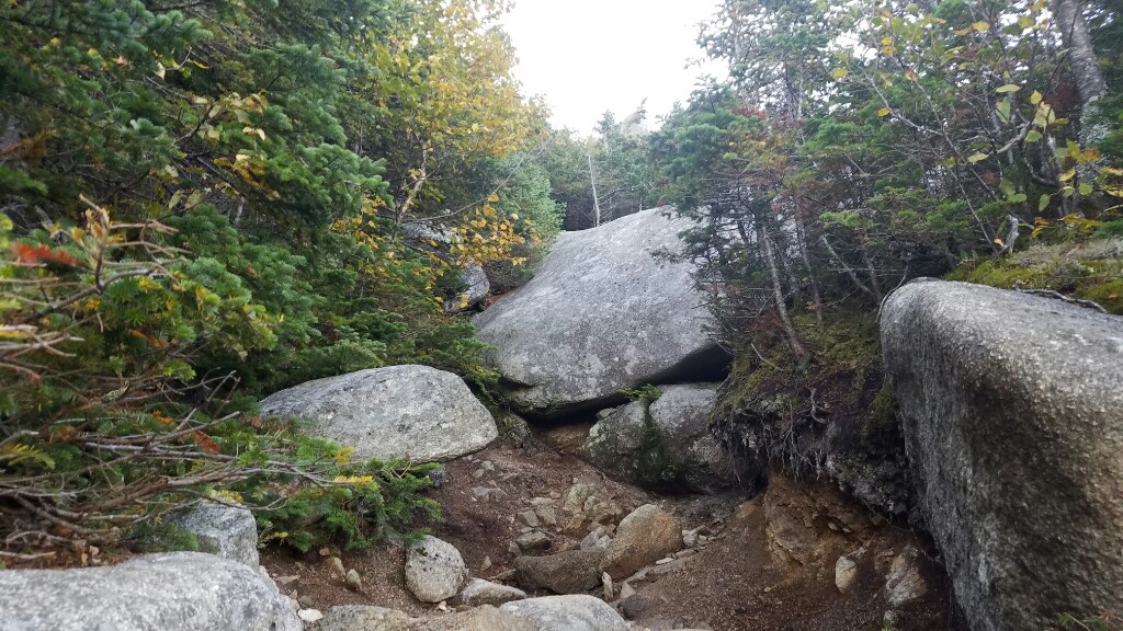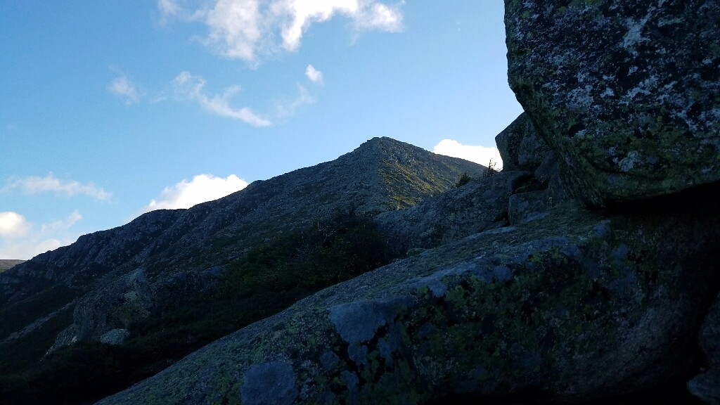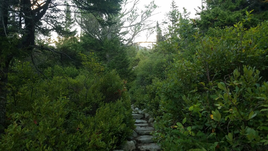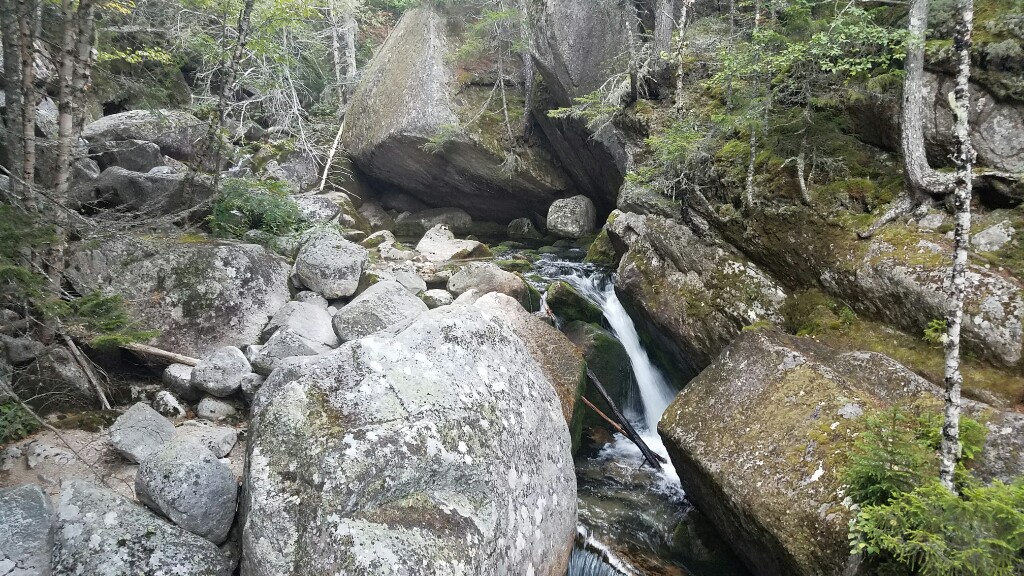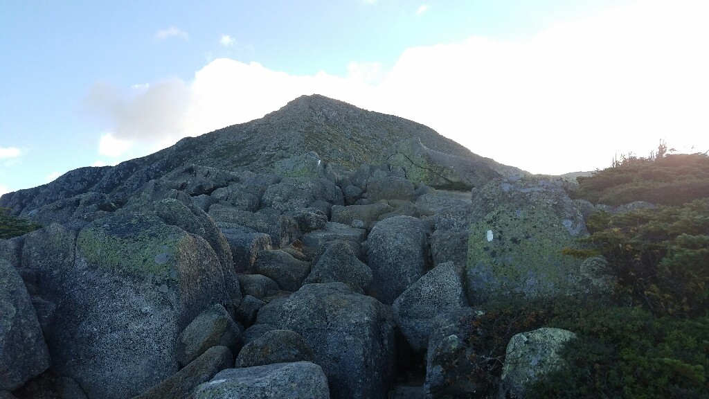 Right around 6:23am we hit the trailhead and began the final 5 mile hike up Katahdin. The trail began with a really nicely graded path, with well maintained stone steps. This lasted for about a mile, up to the falls. It was a nice warmup before the hard stuff ahead. At about 2.6 miles, or just after halfway, we hit the treeline, and were confronted with a big, steep pile of boulders… it was time to climb.