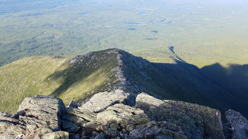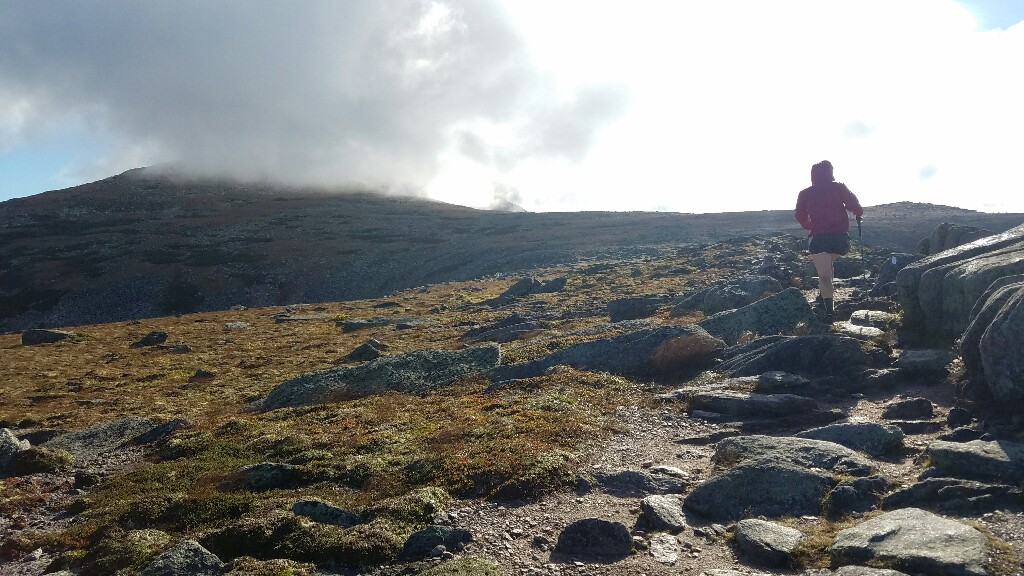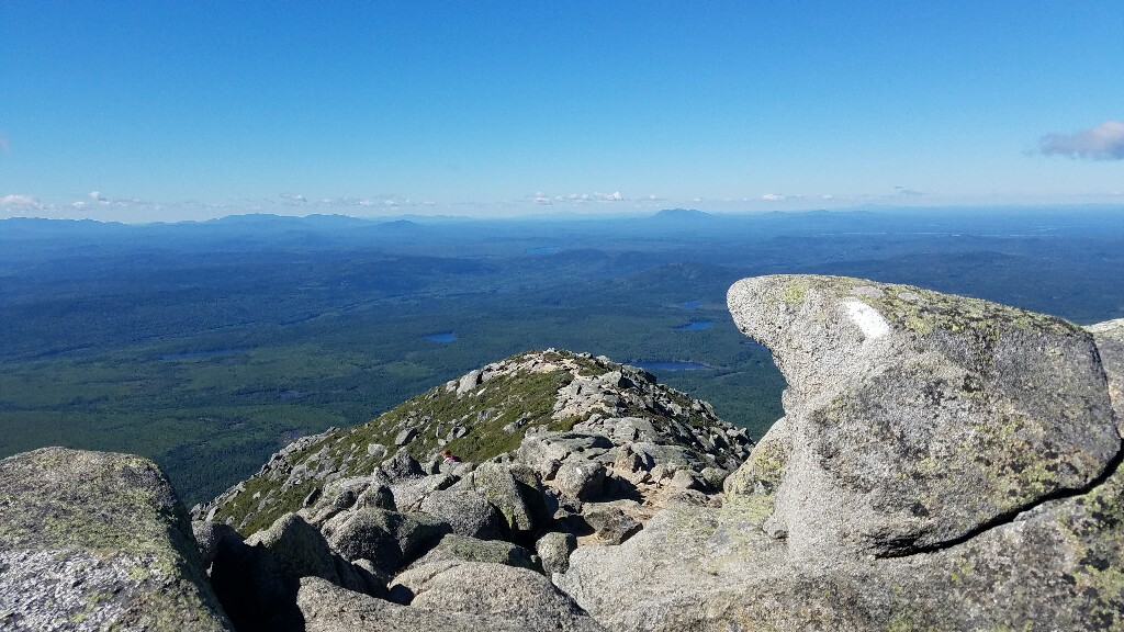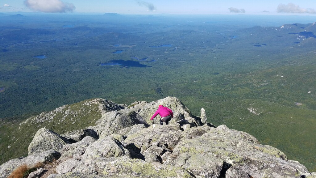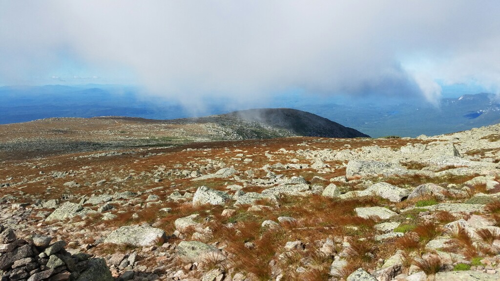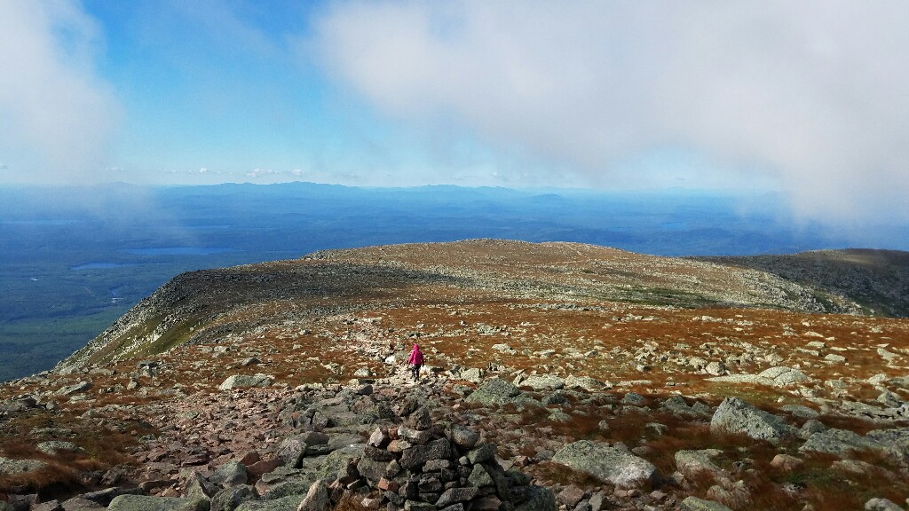 Right around 6:23am we hit the trailhead and began the final 5 mile hike up Katahdin. The trail began with a really nicely graded path, with well maintained stone steps. This lasted for about a mile, up to the falls. It was a nice warmup before the hard stuff ahead. At about 2.6 miles, or just after halfway, we hit the treeline, and were confronted with a big, steep pile of boulders… it was time to climb.