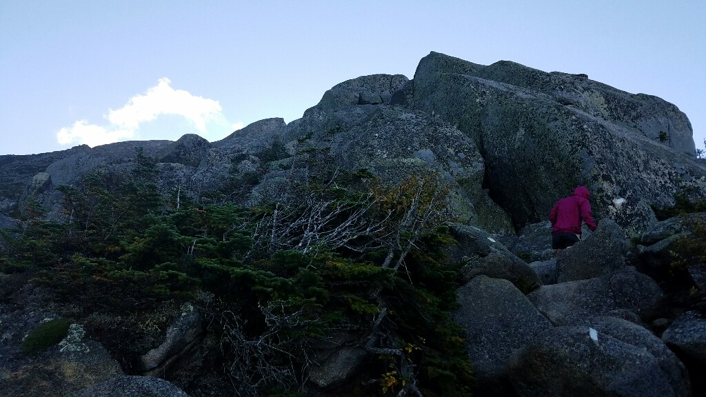 The next mile or two really wasn’t so much hiking as it was climbing. We were using our arms and hands as much as or legs and feet. There’s really not a path during this climb, just a bunch of white blazes painted onto rocks to make sure you’re climbing in the right direction. It was a pretty challenging climb, but it was a lot of fun. It was made even more intense by the high winds that were gusting hard, forcing us to keep a low center of gravity. The winds were so strong that we both had to wear jackets for the entire climb because it got so cold. I’m not entirely sure what the wind chill factor was, but it felt like it got down into the low 40s. There were a few points during the climb that I felt more like a mountaineer climbing Everest rather than an Appalachian Trail hiker just summiting a peak.