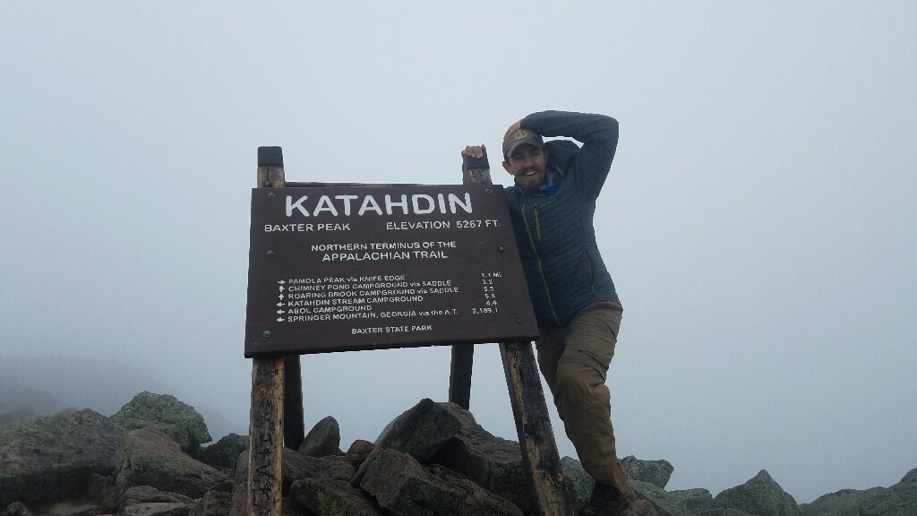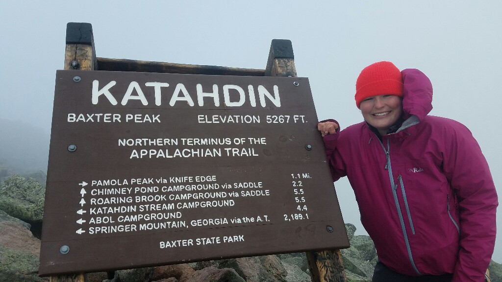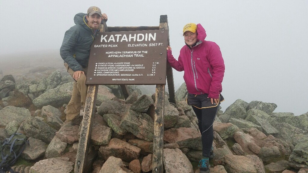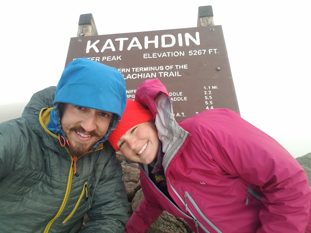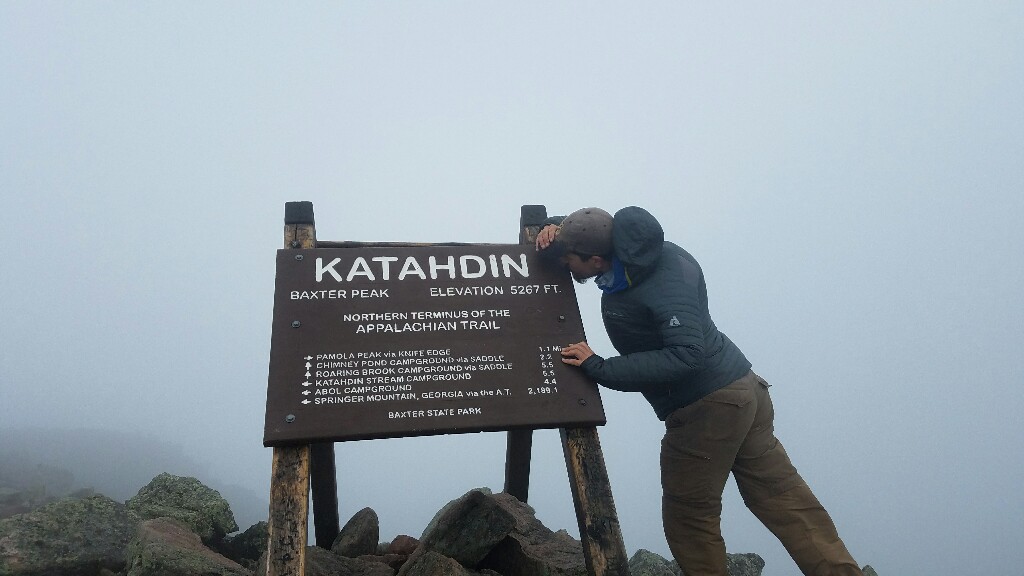 The summit wasn’t exactly a relaxing place to rest for too long. We both had to put on an extra layer to keep out the wind and cold. We still had a snack up there, and of course took a few photos at the summit sign. We didn’t really have the chance to process the fact that we had just completed a 2,189.1 mile walk since it was just so cold and windy. All we could really focus on was getting back down below the treeline, out of the wind so we could warm up again.